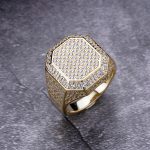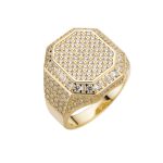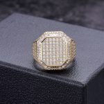 925K silver gold-plated king ring with VVS moissanite diamonds and a custom initial. Regal shine by Diamond Dancing