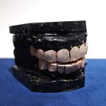 Luxury rose-gold Diamond Dancing grillz fully iced with VVS Moissanite stones. Custom fit, flawless shine, and passes the diamond tester.