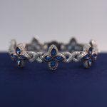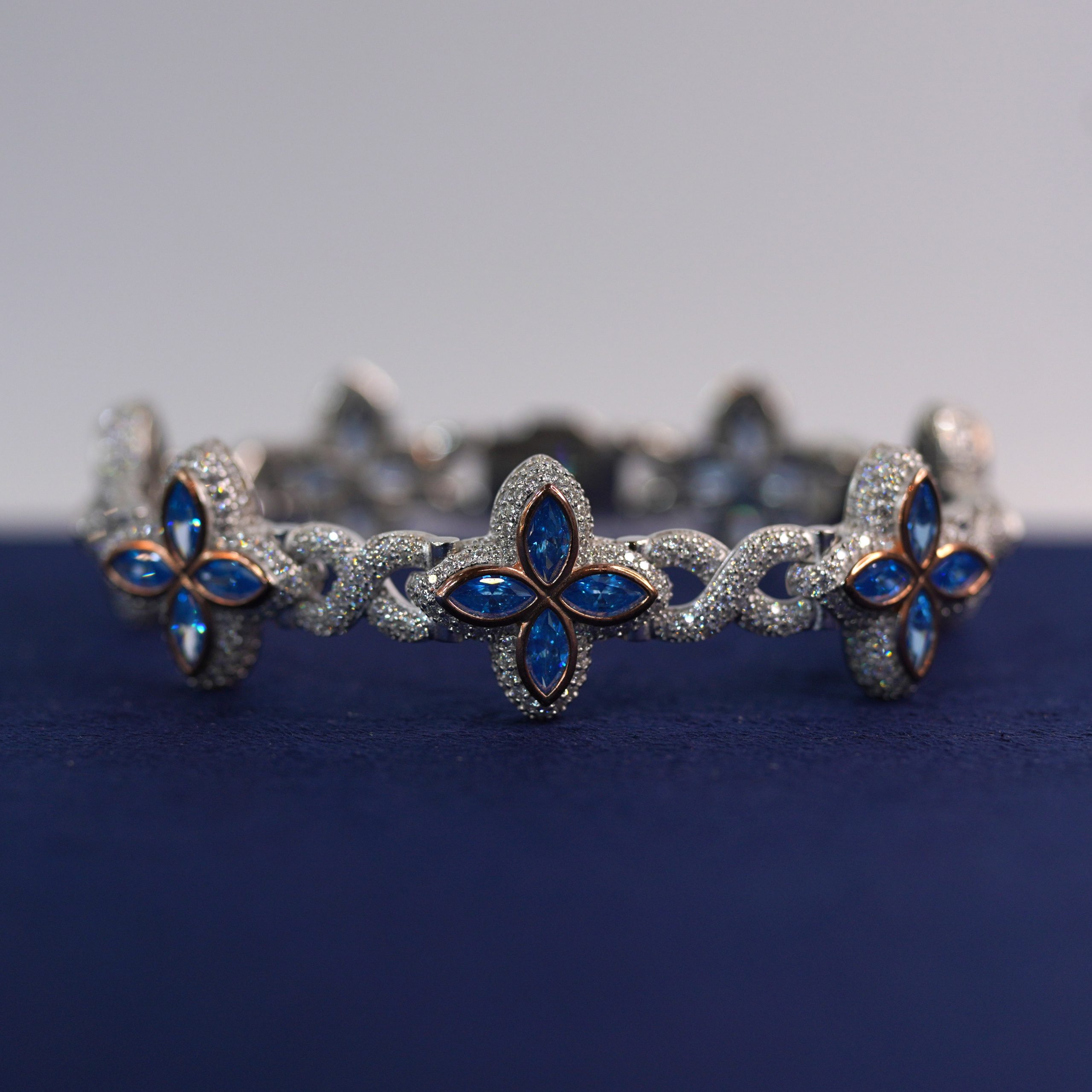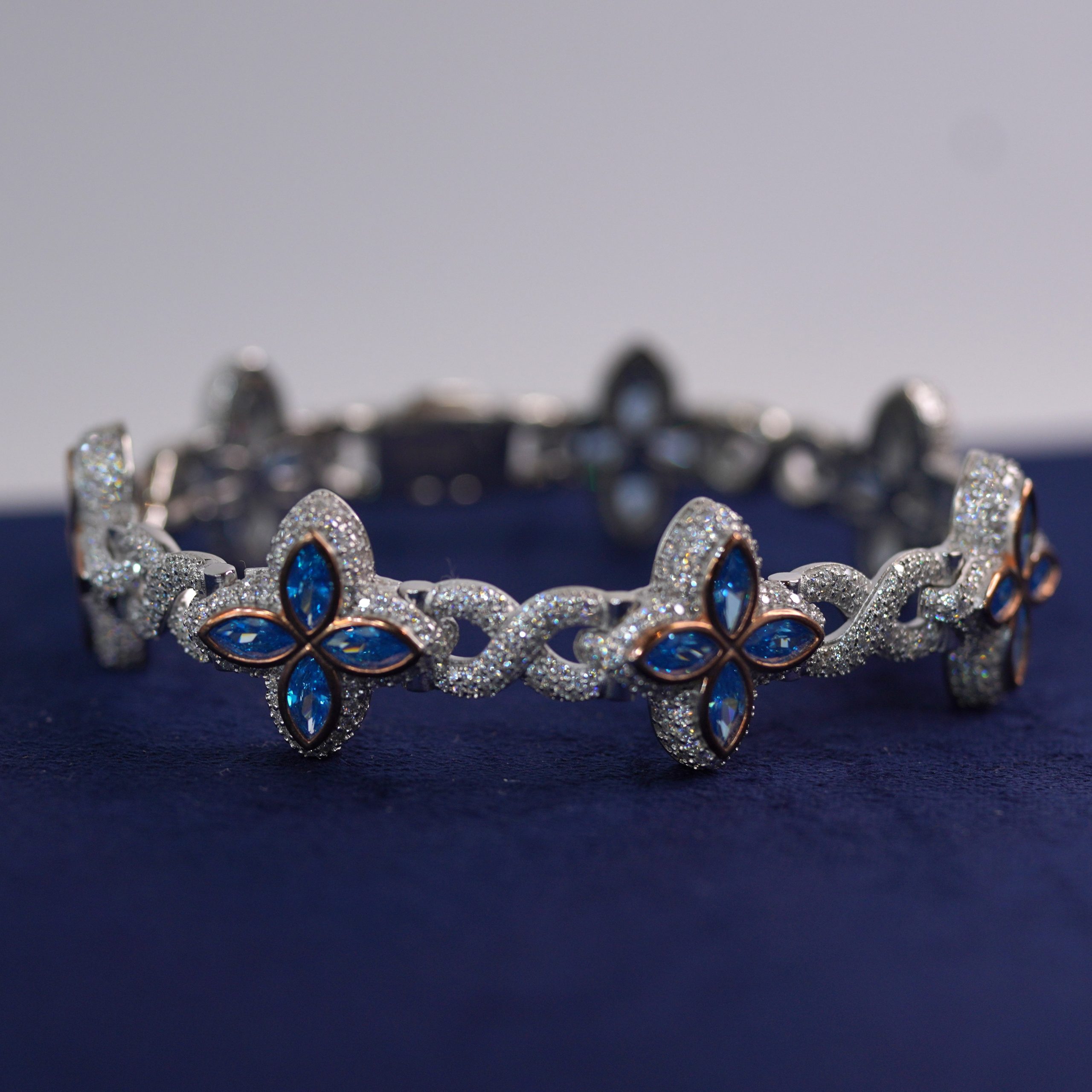 Elegant 925 silver bracelet featuring blue marquise stones surrounded by VVS moissanite halos. Stunning sparkle that passes the diamond tester, finished with signature Diamond Dancing shine.