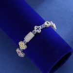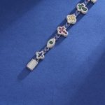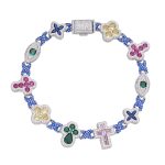 925K Silver Religious Bracelet with VVS Moissanite Diamonds in a vibrant multi-colored style. Features round and baguette stones with a polished rhodium finish.