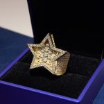 Covered in pavé-set stones across its five points, it delivers exceptional sparkle and a luxurious presence. The sharp star silhouette makes it a standout piece for layering or solo wear, representing success, guidance, and ambition.