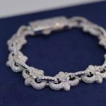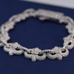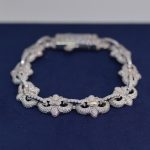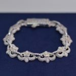 This beautiful Bold chrome heart link bracelet features a unique floral-inspired link design, crafted from premium 925 sterling silver. Each flower and connecting link is fully iced with brilliant VVS moissanite stones, delivering intense shine that confidently passes the diamond tester. The design is lightweight yet luxurious, offering a feminine and classy look with a strong high-end finish. Every angle catches the light, creating the iconic Diamond Dancing effect that makes this bracelet stand out whether worn alone or layered.