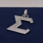 Bold (Sigma) pendant crafted in 925 silver and fully iced with VVS moissanite stones. Brilliant shine, clean edges, and premium micro-pavé setting.