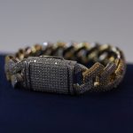 This bold Cuban bracelet is crafted from premium 925 sterling silver, designed in a striking two-tone gold and silver finish. Each link is handset with brilliant VVS moissanite stones, offering powerful sparkle and confidently passing the diamond tester. The heavy, masculine style and secure iced clasp create a luxury statement piece that catches light from every angle, producing the iconic Diamond Dancing effect. Perfect for daily wear or upgrading any outfit with high-end shine.