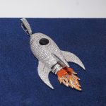 Bold rocket-shaped pendant crafted in 925 silver and fully iced with VVS-quality stones. Premium shine, Diamond Dancing effect, and passes the diamond tester.