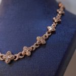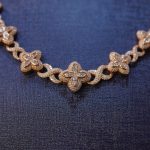 This luxurious Diamond dancing rose pink marquise clover link chain is crafted from premium 925 sterling silver, designed with linked floral motifs set with vibrant diamond stones at the center. Each petal is surrounded by a full halo of VVS moissanite, giving intense brilliance and confidently passing the diamond tester. The flowing, interlocked chain wraps smoothly around the neckline and catches the light beautifully, creating the signature Diamond Dancing sparkle with every movement. A standout piece that blends elegance, color, and high-end craftsmanship—perfect for special occasions or elevating everyday luxury style.