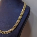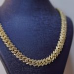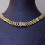 This high-end necklace features a unique diamond-cut interlocking link design, crafted from premium 925 sterling silver with a rich gold-tone finish. Each angled link is fully handset with brilliant VVS moissanite stones, engineered for maximum shine and guaranteed to pass the diamond tester. The sharp, layered link style adds depth and luxury, catching light from every direction and producing the iconic Diamond Dancing sparkle. A bold and elegant statement piece, perfect for clients who want a distinctive iced look with top-tier craftsmanship.