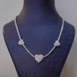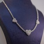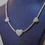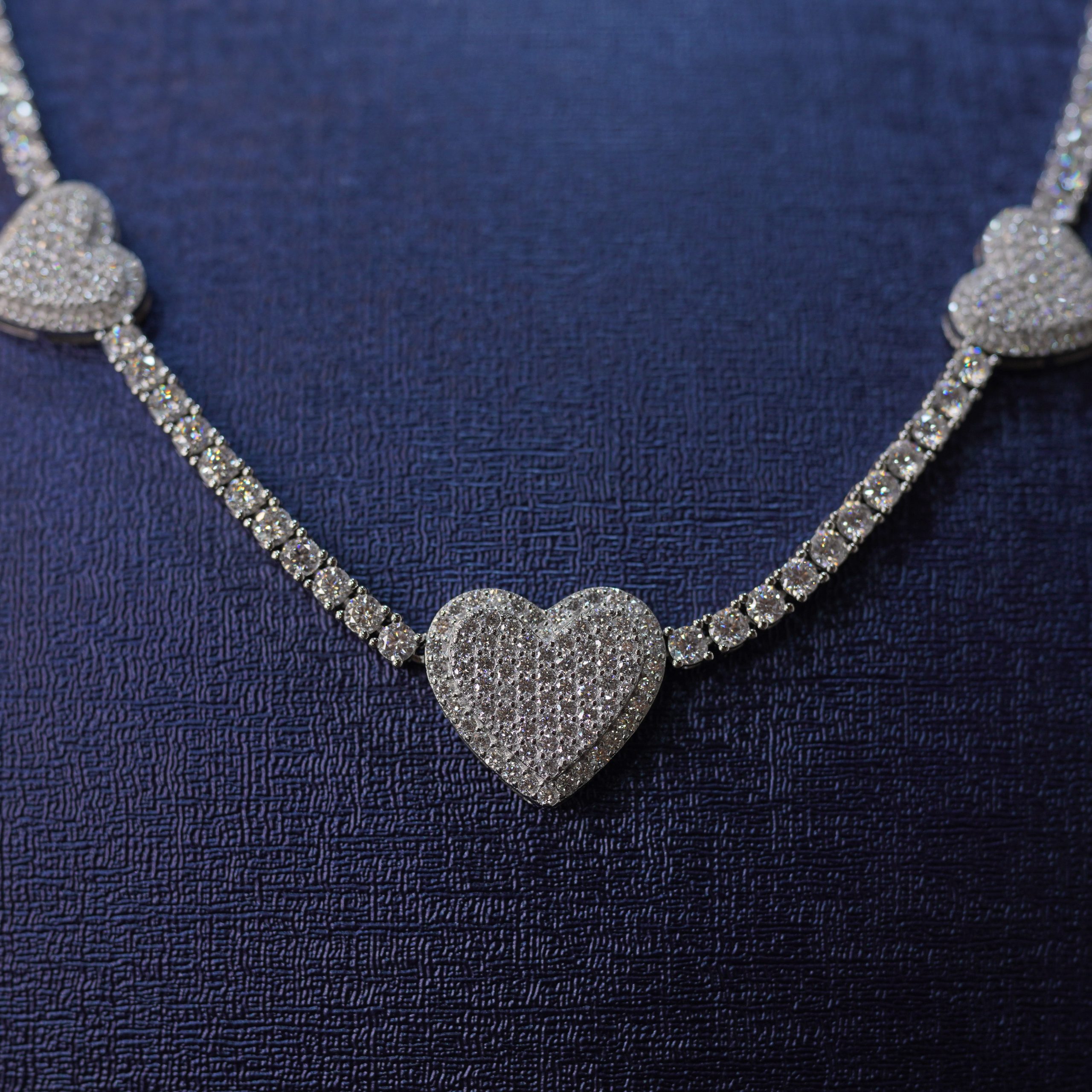 Elegant 925 silver moissanite heart necklace featuring three dazzling heart-shaped pendants along a full stone-set chain. Each heart sparkles with VVS D-color moissanite stones that pass the diamond tester, creating the signature Diamond Dancing brilliance and fire.