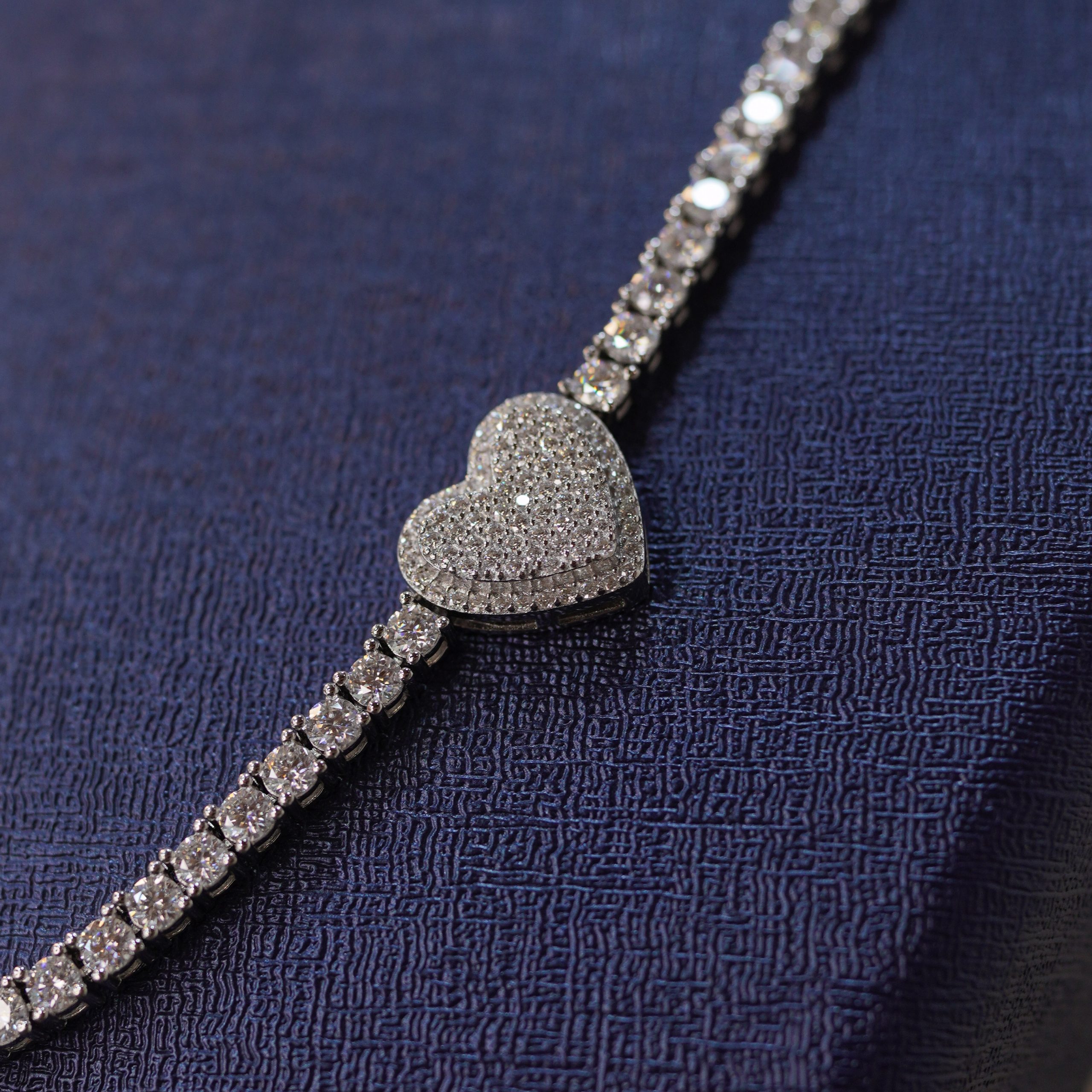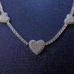 This exquisite Diamond Dancing Heart Necklace is crafted in high-quality 925 sterling silver, designed to capture light from every angle. The necklace features three beautifully set heart pendants, each adorned with VVS D-color moissanite stones that shimmer with exceptional brilliance and clarity — stones that pass the diamond tester, offering the same luxurious sparkle as natural diamonds. The chain itself is fully lined with moissanite stones, ensuring continuous radiance and a refined touch of sophistication. Perfect for both special occasions and daily wear, this piece embodies elegance, love, and timeless charm — a signature of Dreams Jewelry & Diamond Dancing craftsmanship.