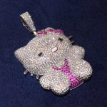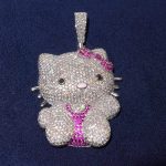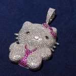 The pendant features a fully iced-out Hello kitty figure with delicate pink stone accents, creating a cute yet luxurious aesthetic. Each detail—from the rounded ears to the sparkling bow—is meticulously crafted to bring the Hello kitty to life.