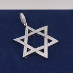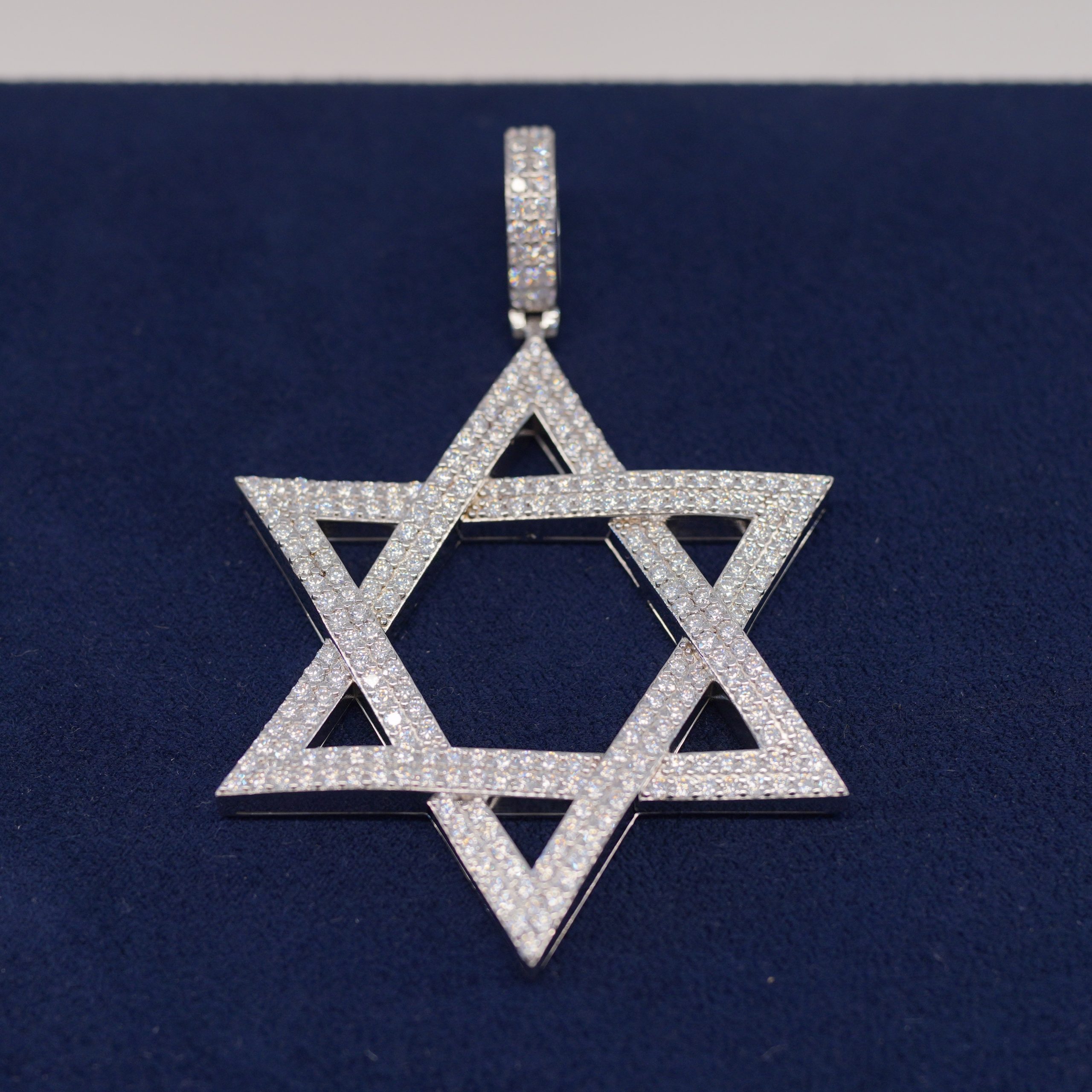925 silver six-point star pendant fully iced with VVS moissanite stones that pass the diamond tester, shining with the signature Diamond Dancing brilliance.