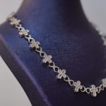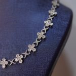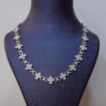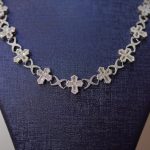 This elegant necklace is crafted from high-quality 925 sterling silver, designed with a continuous pattern of diamond-cut iced crosses connected by detailed interlocking links. Each cross is fully handset with brilliant VVS moissanite stones, delivering intense sparkle and confidently passing the diamond tester. The flowing structure lays smoothly around the neckline, catching light from every direction and creating the iconic Diamond Dancing shine. A refined and luxurious piece perfect for both everyday elegance and special occasions.