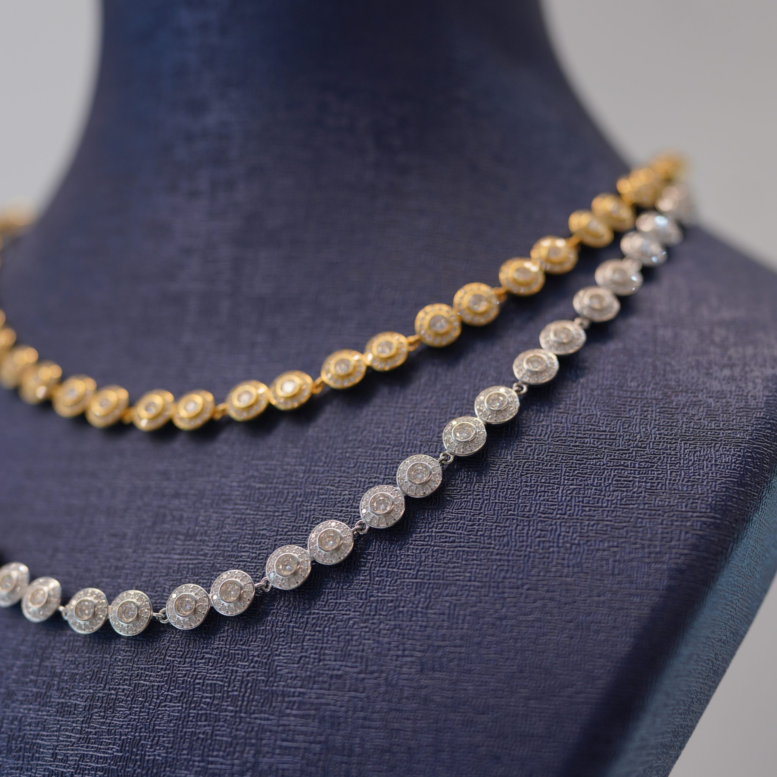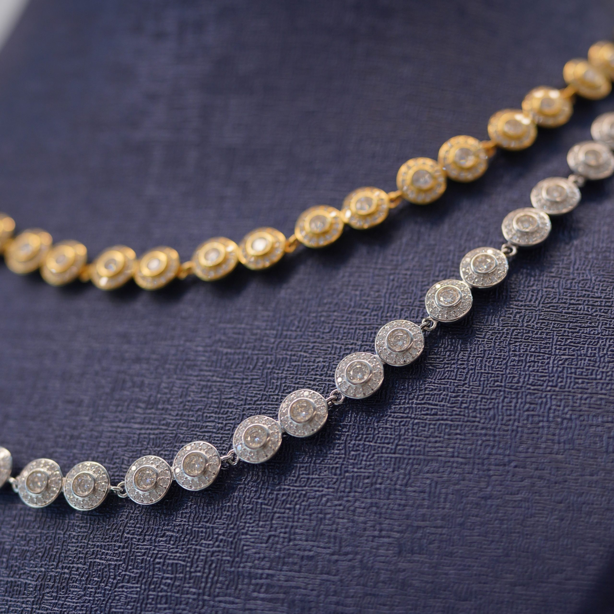 These handcrafted chains by Dreams Jewelry – Diamond Dancing are designed to deliver refined elegance with a modern touch. Each necklace features carefully set Diamond Dancing stones that reflect light from every angle, creating a continuous sparkle that elevates any look.