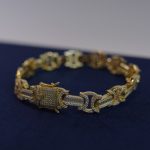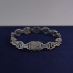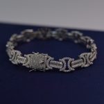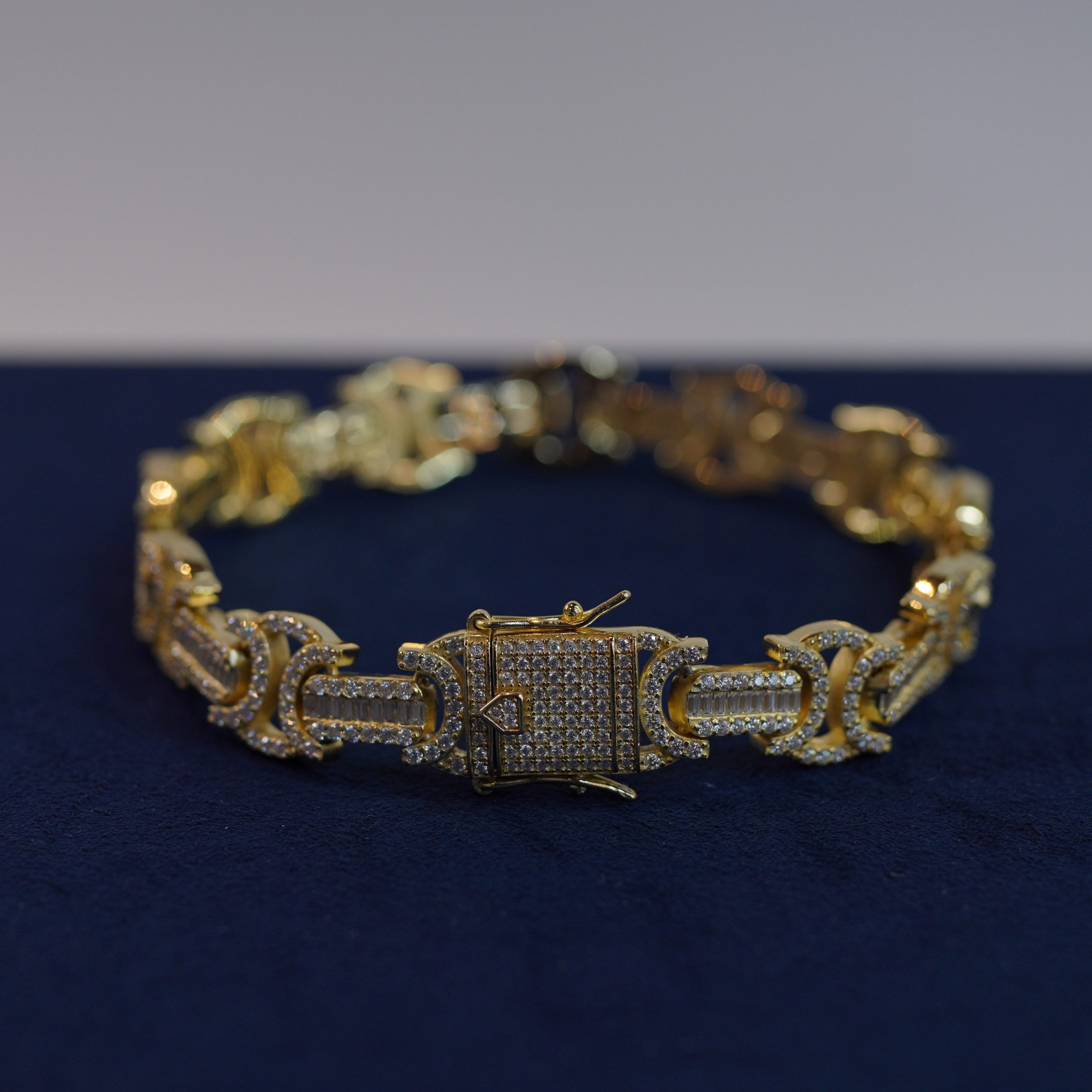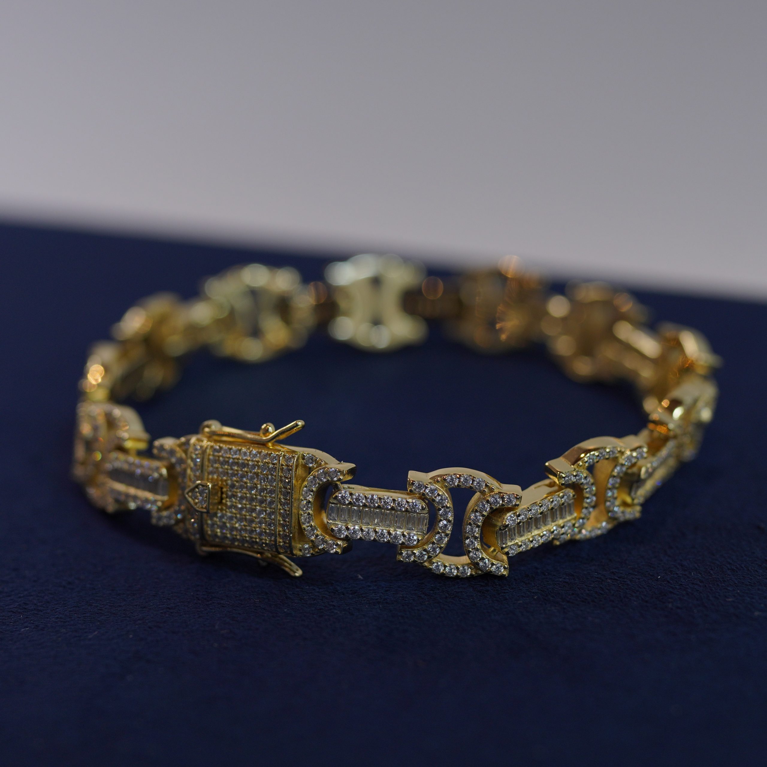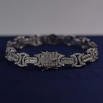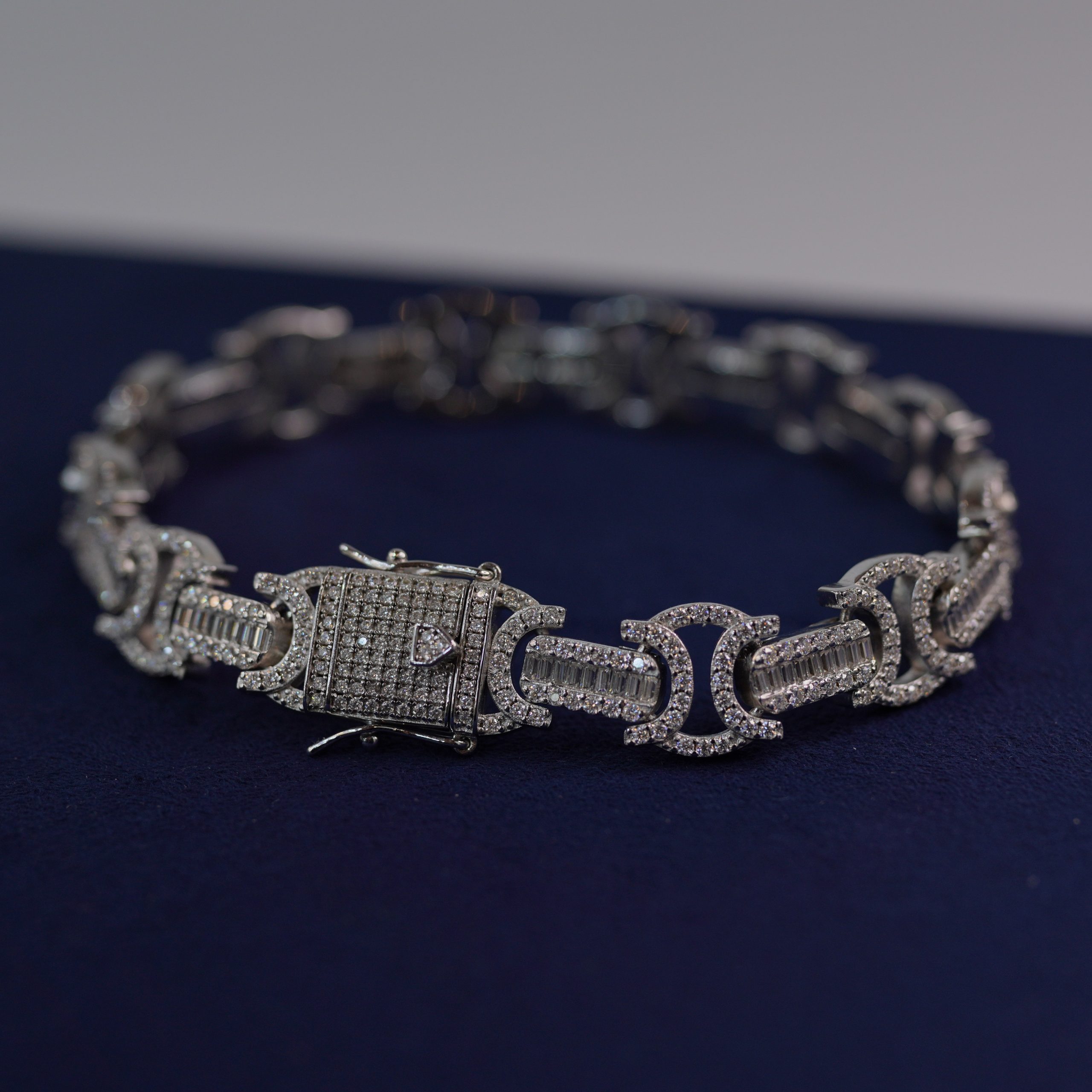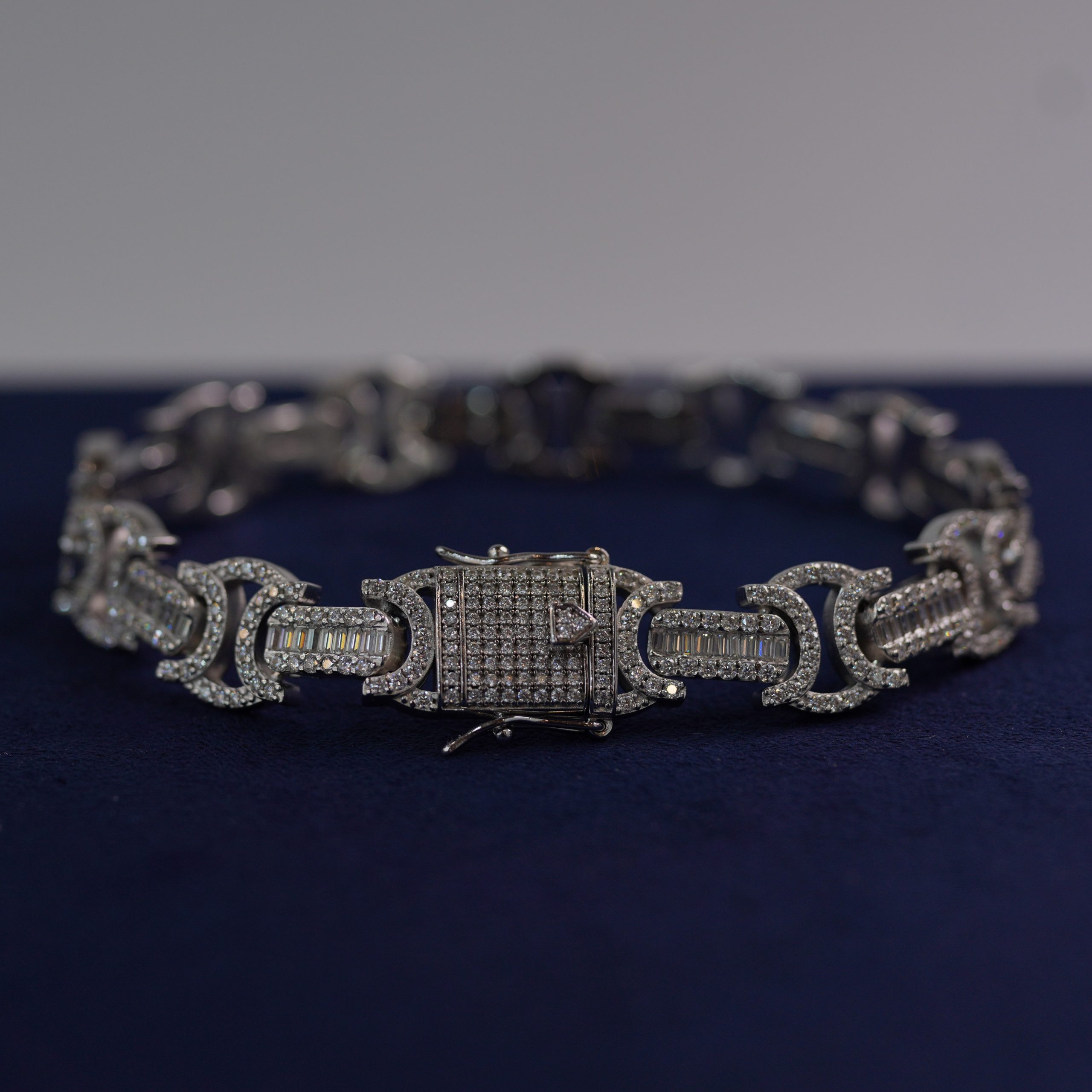 Luxury diamond-dancing bracelet with a bold square clasp and intricate links — all stones pass the diamond test, available in elegant silver color.