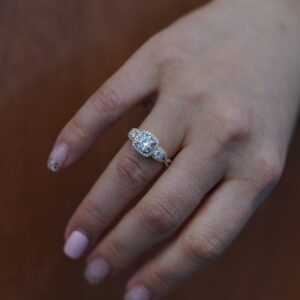 Make a statement that lasts a lifetime with our Lab-Grown Diamond Three-Stone Halo Engagement Ring. Designed for the bride who desires maximum brilliance and ethical sourcing, this ring combines classic “trinity” symbolism with contemporary craftsmanship.