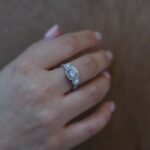The three-stone design is a cherished tradition, representing a couple’s journey: the Past you’ve shared, the Present you are building, and the Future that awaits.