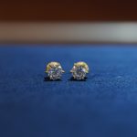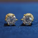 These are round solitaire stud earrings, which appear to feature a large clear stone