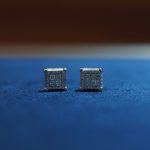 square stud earrings heavily “iced out” diamond dancing