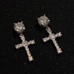 These are unisex sterling silver cross drop dangle stud earrings, They are a popular hip-hop or trendy style, known for their bright, “iced out” appearance without the cost of real diamonds.