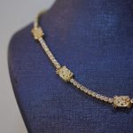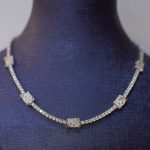 This elegant tennis necklace is crafted from high-quality 925 sterling silver, designed with a row of brilliant round-cut VVS moissanite stones paired with adorable hello kitty – shaped iced charms. Each charm is fully handset with sparkling moissanite, providing a unique and playful luxury look. All stones confidently pass the diamond tester, ensuring powerful shine and authenticity. The necklace sits beautifully on the neckline, catching light from every angle and creating the iconic Diamond Dancing sparkle. A perfect blend of cute and classy — ideal for daily wear or special occasions.